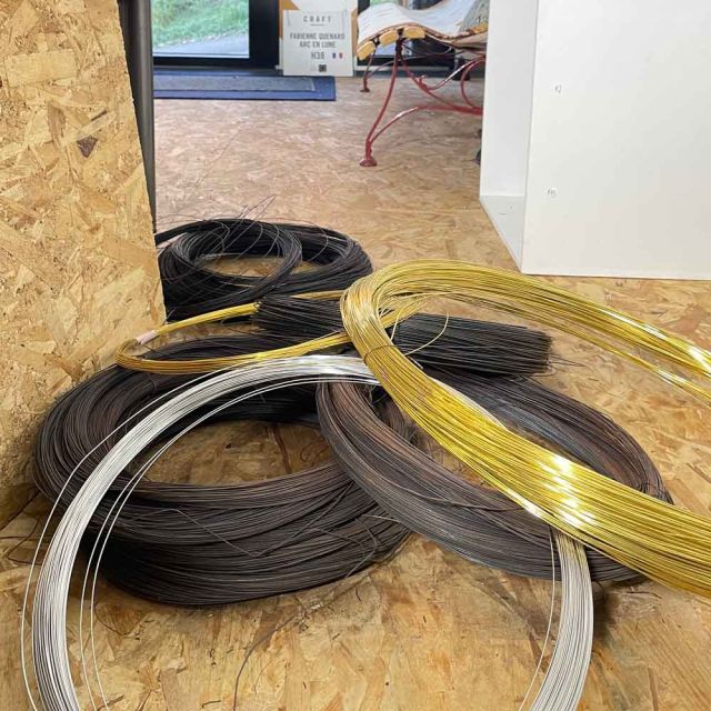 Mon atelier se niche dans un ancien moulin, au cœur des vignes de Chignin. C’est là que je travaille le Fil en acier, laiton, cuivre, alu, inox, comme d’autres dessinent sur le papier : librement, instinctivement, en laissant parler le trait.