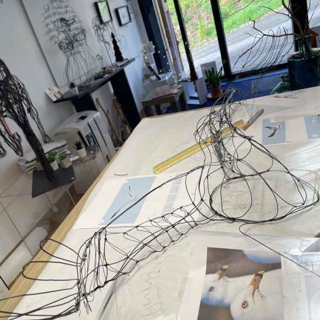 — autant de formes qui prennent vie sans soudure ni découpe, à partir d’un simple croquis. Chaque sculpture est tissée patiemment à la main, dans un dialogue constant entre geste, volume et émotion.
